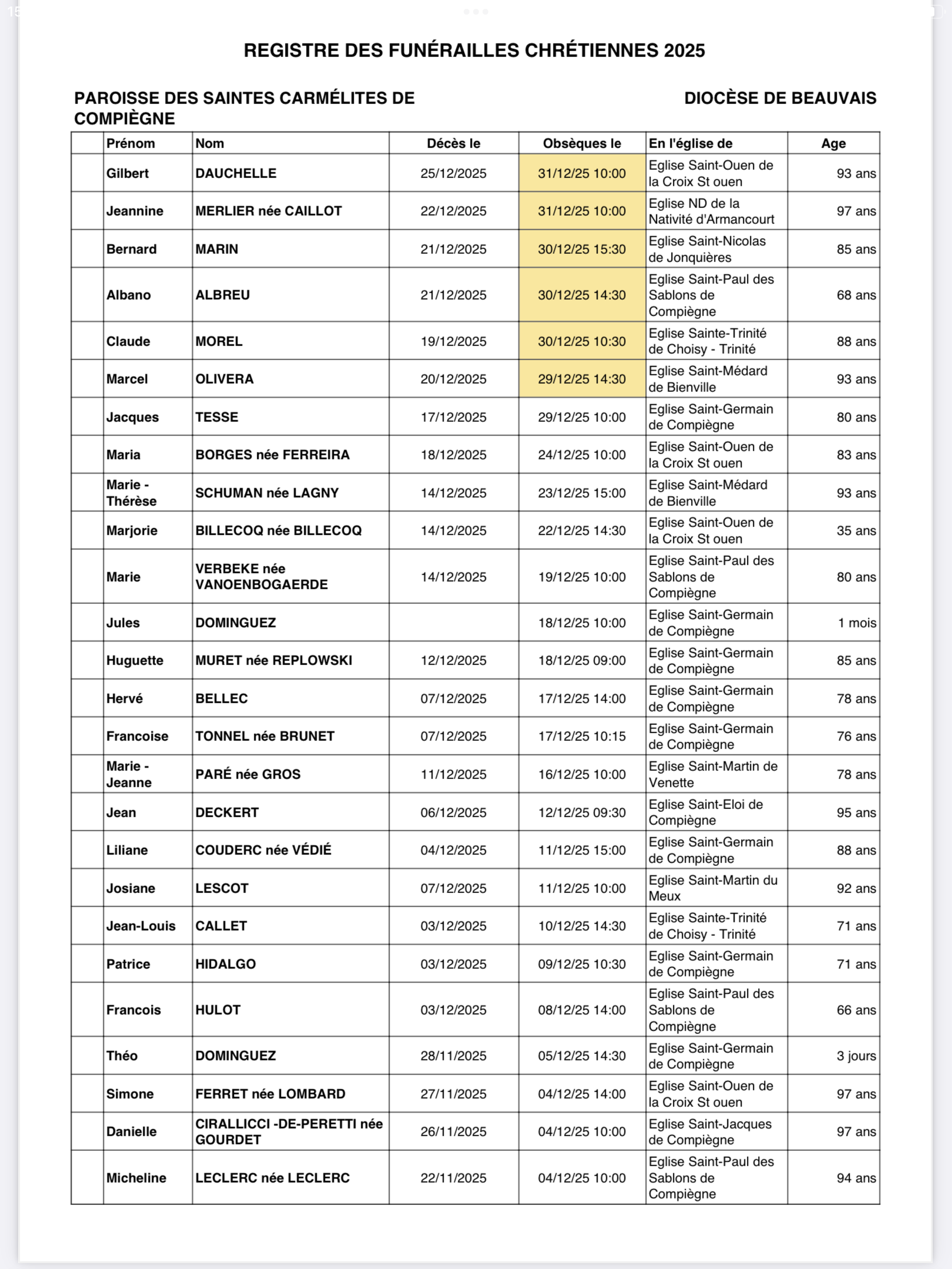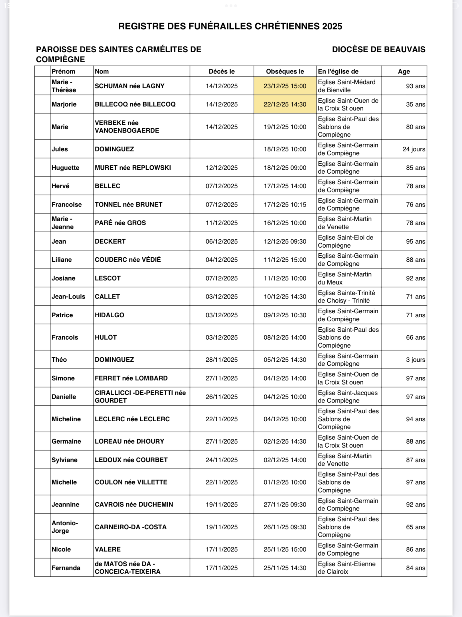 Actualités paroissiales