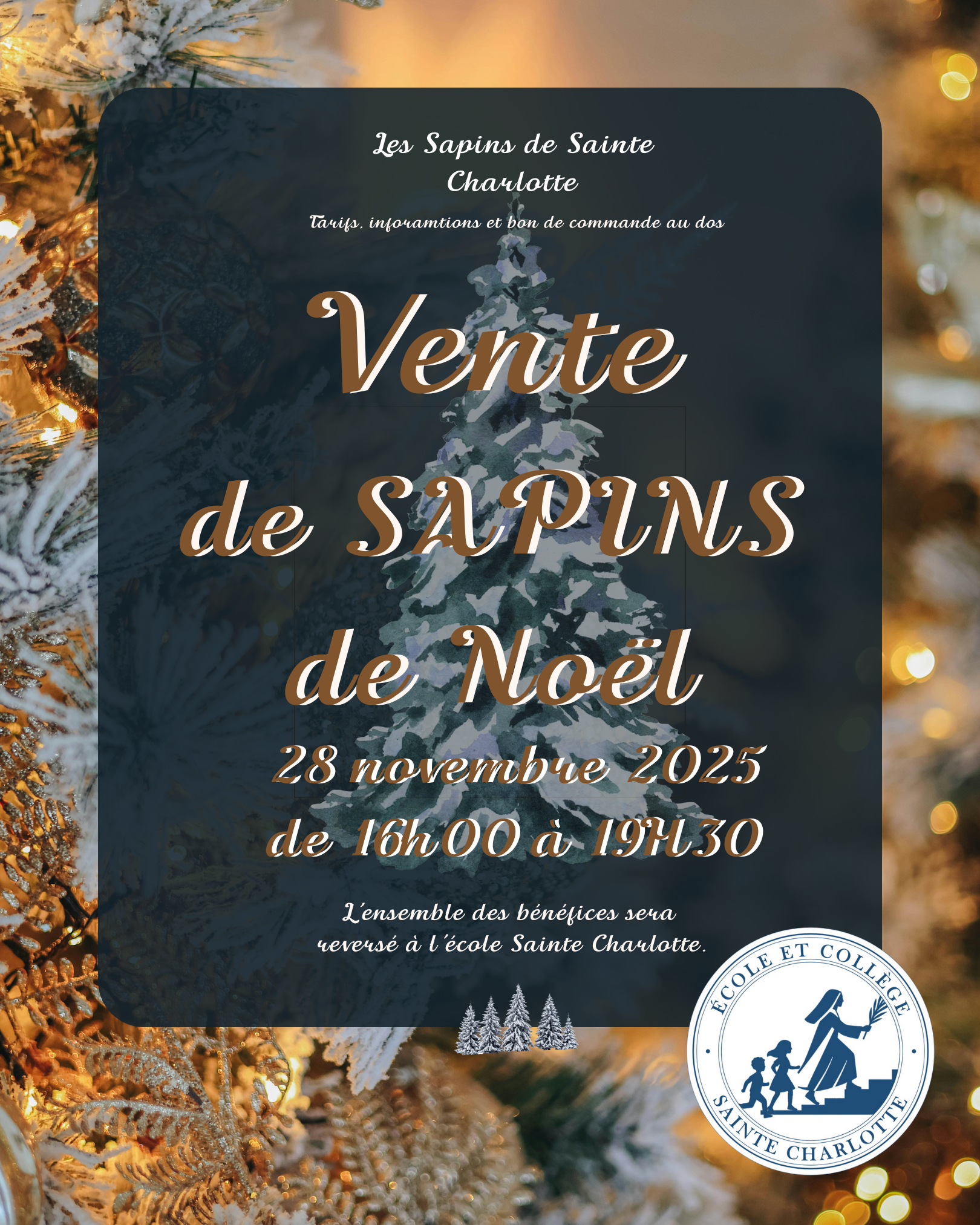 L’école Sainte Charlotte, qui vient de vivre sa première rentrée scolaire dans les locaux de l’église St Eloi à Compiègne, vous propose une vente de sapins issus d’une sapinière locale.