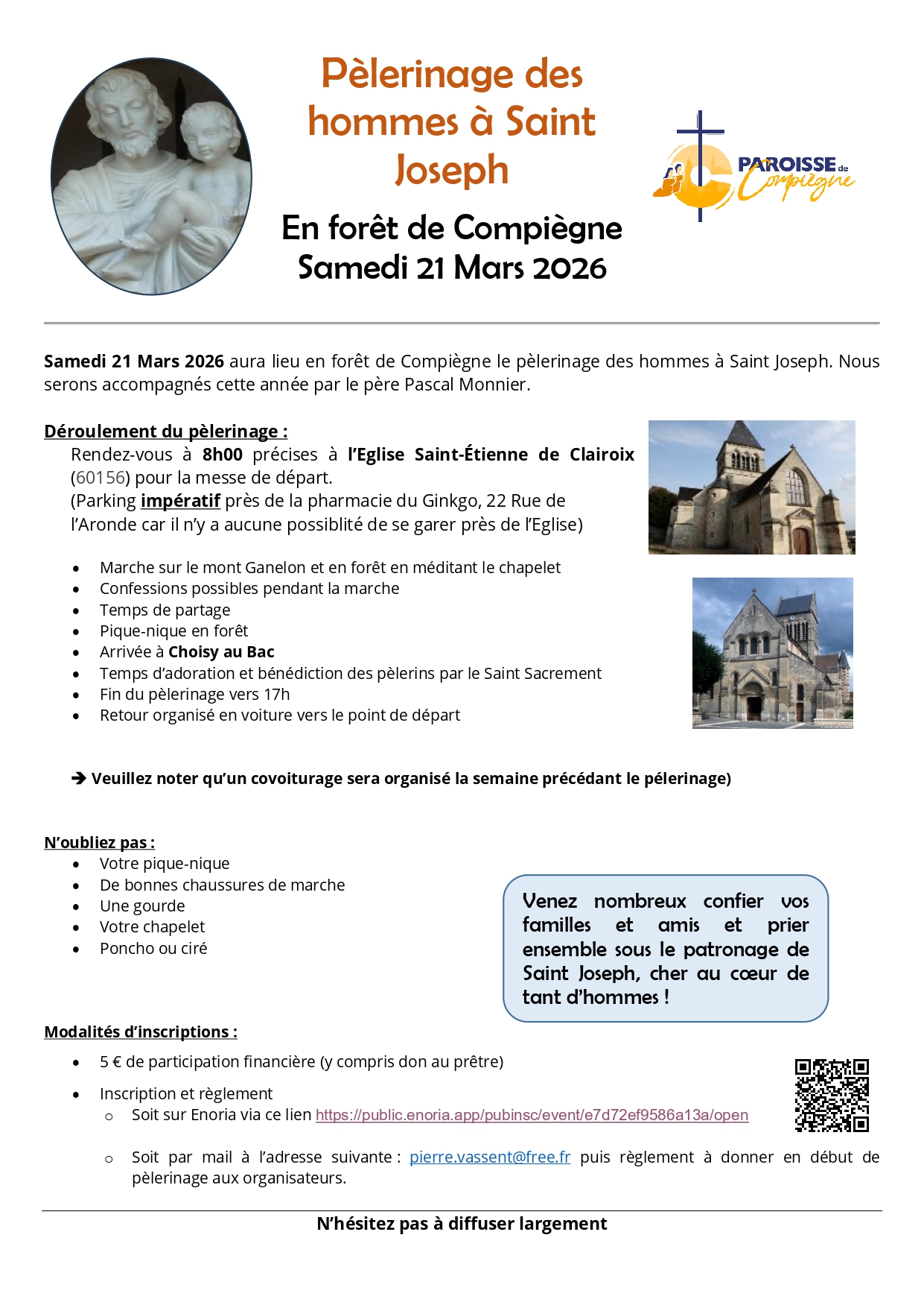Le pèlerinage des hommes à Saint Joseph aura lieu en forêt le samedi 21 mars.