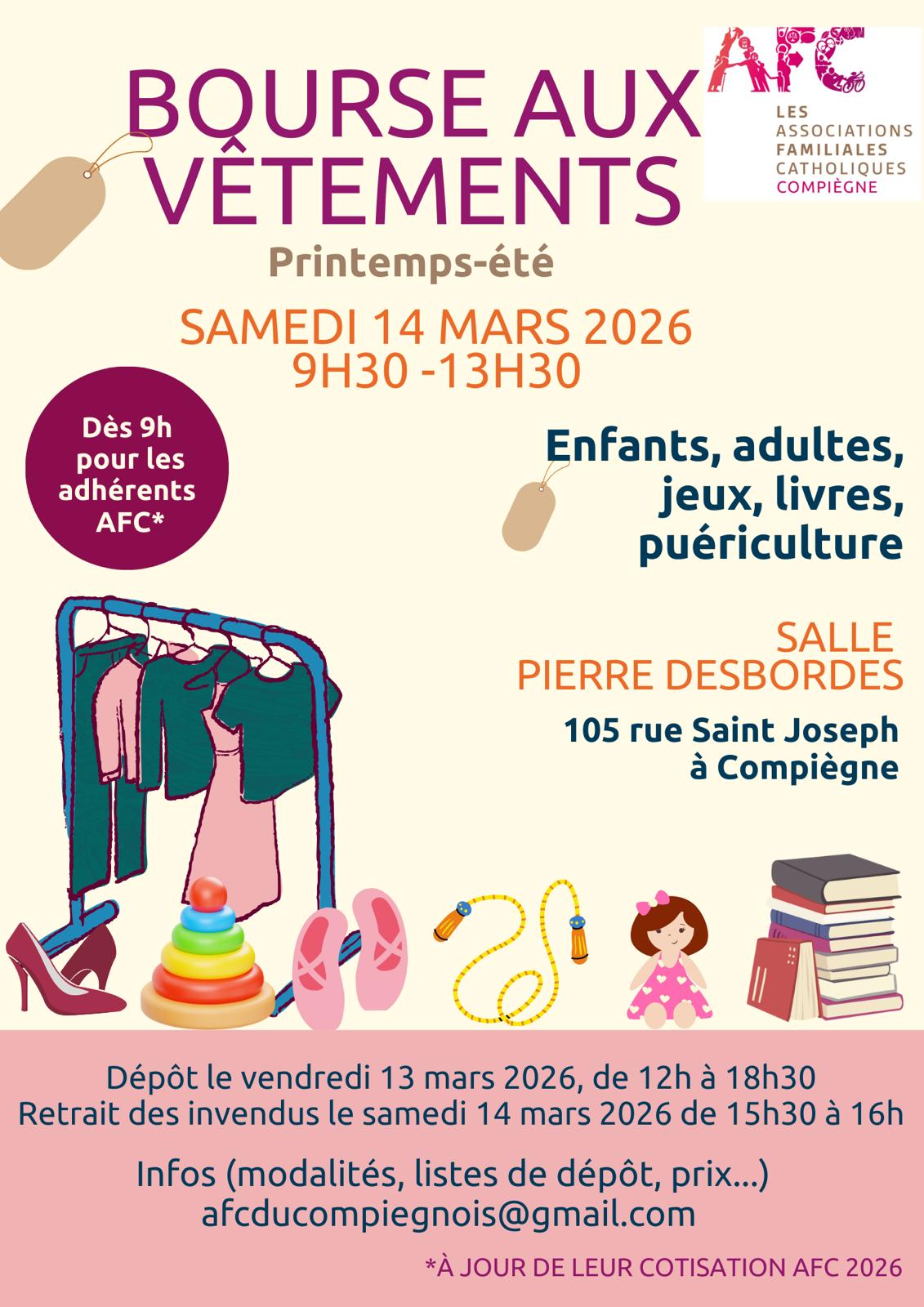 L’AFC de Compiègne organise sa bourse aux vêtements printemps-été.