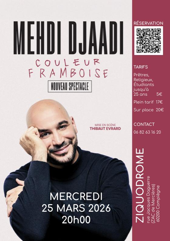 Unique représentation dans la région de Compiègne de Mehdi Djaadi avec son nouveau spectacle : “Couleur framboise” le mercredi 25 mars 2026