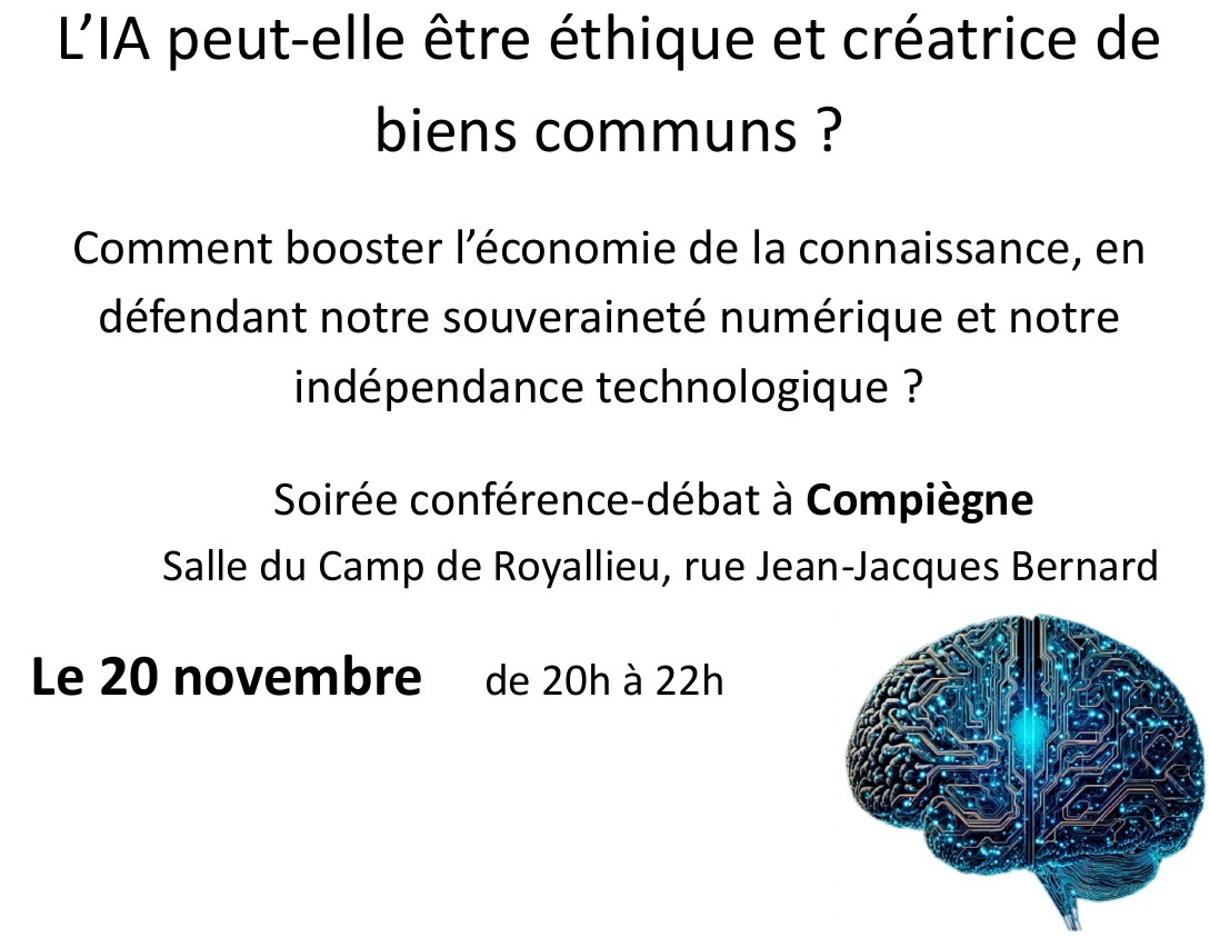20 novembre / 20:00 - 22:00 L’IA peut-elle être éthique et créatrice de biens communs ? Salle du Camp de Royallieu rue Jean-Jacques Bernard, Compiègne, France Formation