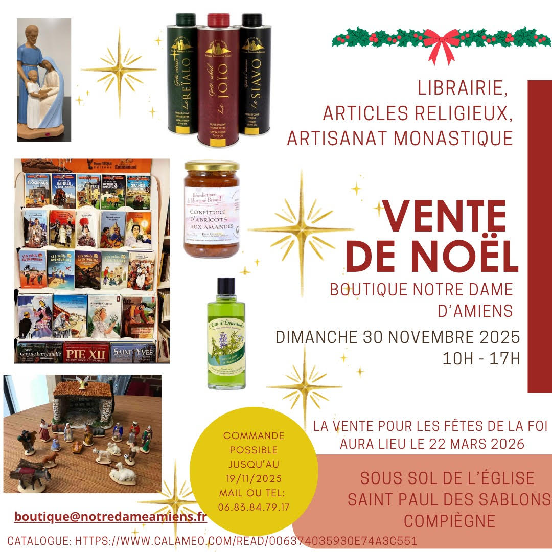 30 novembre / 10:00 - 17:00 Vente de Noël – Notre Dame d’Amiens Eglise Saint Paul 2 avenue de Huy, Compiègne, France Formation