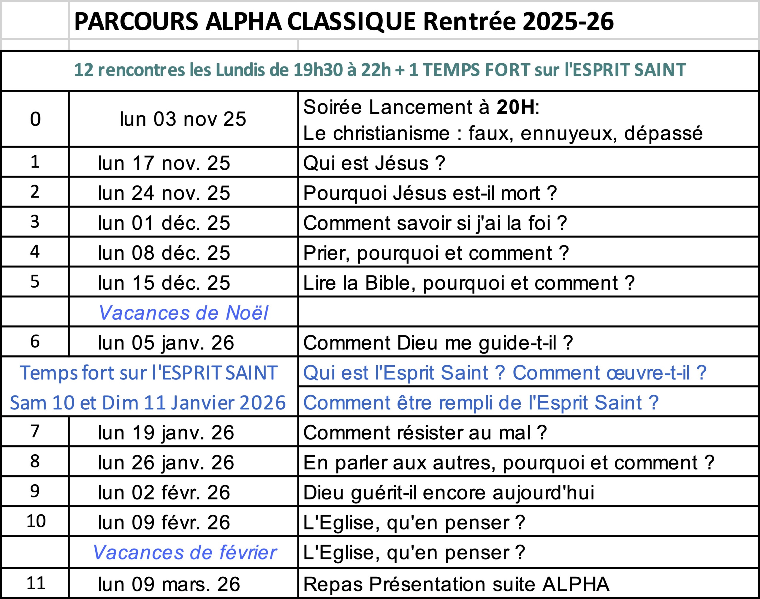 Alpha, ce sont des groupes d’échanges au sein desquels on peut librement partager ses interrogations sur la religion, dans le respect de chacun ;